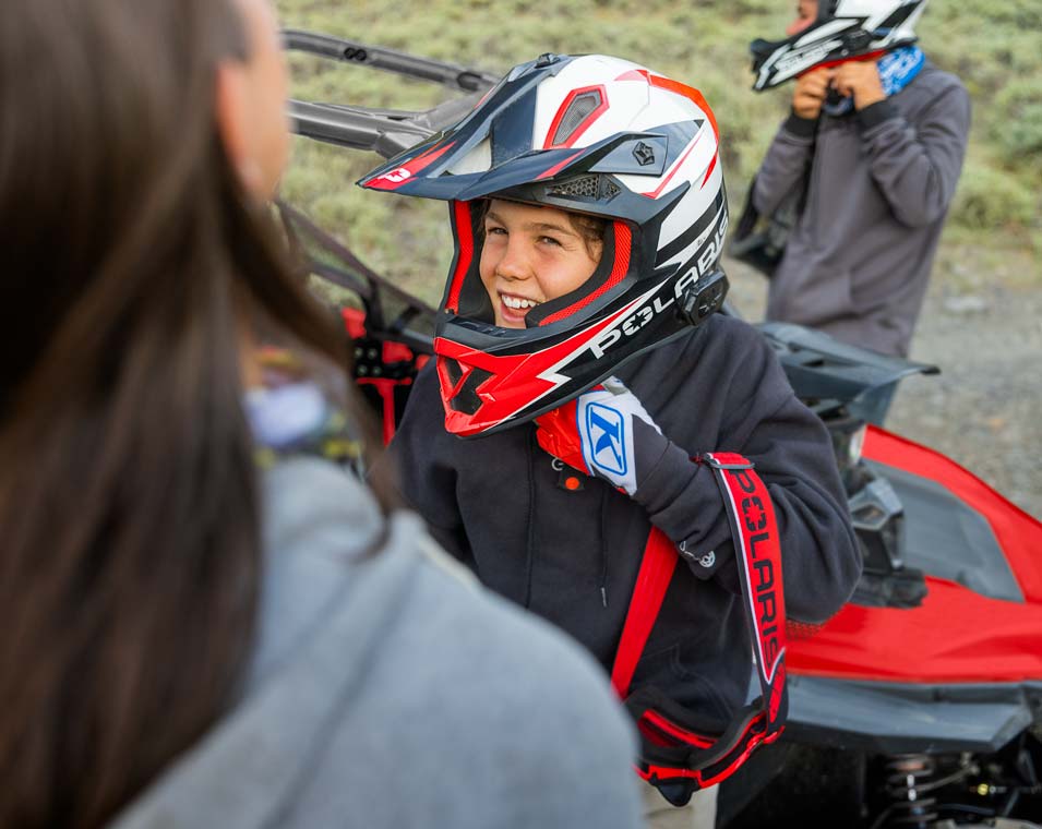 Le RZR 200 accompagne vos enfants de 10 à 16 ans tout au long de leur progression grâce au moteur EFI de 180 cm3, au siège et volant réglables, le siège passager et les accessoires en option.